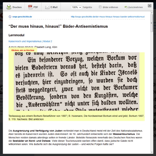 Sie können dann ein pdf aus dem Lernmodul generieren und dabei Textbausteine oder Bilder nach Belieben löschen.