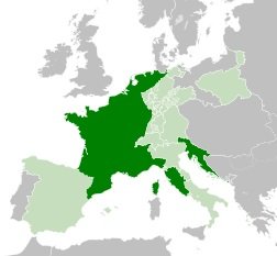 Napoleon (geboren 1769 auf Korsika, gestorben 1821 auf St. Helena) ist wohl die bekannteste historische Persönlichkeit der französischen Geschichte. Er gelangte nach dem Scheitern der Französischen Revolution an die Macht und stieg bald zum unangefochtenen Alleinherrscher auf. Unter Napoleon erlebte Frankreich große militärische Erfolge. Französische Truppen eroberten weite Teile Europas (siehe die Karte rechts).