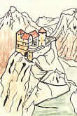 Holzaufbau über der Mauer zur Verteidigung, überdacht.