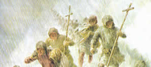 Im Jahre 1212 zogen Tausende von deutschen Jungen und Mädchen aus, um das Grab Christi aus der Hand der "Ungläubigen" zu befreien. Ihr Anführer hatte ihnen versprochen, sie trockenen Fußes über das Meer zu bringen, doch sollte sich das Wasser nicht, wie einst bei Moses, für sie teilen. Sie zogen zuerst nach Italien und die meisten dieser Kinder kehrten nie zurück. Ein Engel soll einem 16-jährigen Bauernjungen befohlen haben Jerusalem zu befreien. Blind folgten die Kinder ihrem charismatischen Anführer zwischen Ostern und Pfingsten des Jahres 1212. In mittelalterlichen Quellen heißt es, dass an die 25.000 junge Menschen auf ihrem Weg ans Mittelmeer, über Italien, durch Köln kamen. Wissenschaftler sind sich bis heute nicht im Klaren, ob es sich bei dieser Bewegung um eine wahre Geschichte handelt oder aber um eine kollektive Erfindung ihrer Zeit. Zumindest aber gab es um ca. 1216 jemanden in Köln der diese Geschichte vermutlich als Augenzeuge niederschrieb.