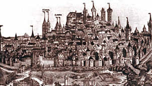 Isoliert in der Stadt wohnten die Juden, die nur wenige Rechte hatten. Da ihnen die meisten Berufe verschlossen waren, ergriffen viele den Beruf des Geldverleihers, was sie bei der Bevölkerung noch unbeliebter machte. Sie durften keinen Grund und Boden erwerben, wurden nicht in die Zünfte aufgenommen und durften kein Amt in der Verwaltung der Stadt bekleiden. Infolge der Kreuzzugsbewegung und der großen Pestepidemie in der Mitte des 14. Jh. kam es wiederholt zu Judenverfolgungen.