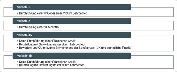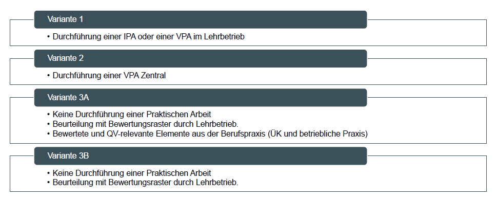 Der Bund und die Kantone haben der Ausbildungsdelegation I+D (AD) mehrere Varianten zur Durchführung bzw. Nicht-Durchführung der VPA vorgelegt. (klicken)