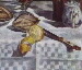 allein. Diese melancholische, ruhige, erstarrte Stimmung wird zusätzlich von der Katze betont. Sie wendet sich von uns ab und ihrem Hinterteil zu. Ihr Putzen macht uns, durch das Wissen, daß Katzen sich nur bei Ruhe putzen, erneut auf den nachdenklichen ruhigen Stillstand des Bildes aufmerksam. Der Betrachter allerdings ist von dieser Situation distanziert, ja gar ausgeschlossen, und fühlt sich verloren. |