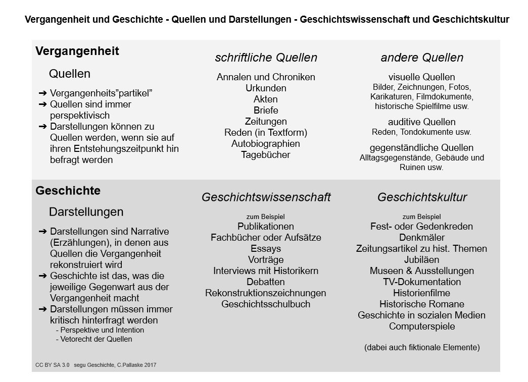 Grundsätzlich kann jede Quelle nach dem Verfahren der Quellenanalyse untersucht werden. In den folgenden zwölf segu-Modulen findet sich das Verfahren in der Aufgabenstellung. So kannst du die Untersuchung von Textquellen üben.