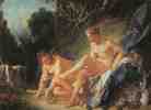 Das Rokoko zeichnet sich durch Kleinteiligkeit, Zierlichkeit und durch verfeinerte Ornamentierung aus und setzt sich damit von Monumentalität und Pathos des Barock ab. Das Wort (französich rococo) ist abgeleitet von rocaille (Grotten- und Muschelwerk) nach einem immer wieder auftretenden Ornamentmotiv. Das Rokoko lässt sich etwa auf die Zeit der Regentschaft (1715-1774) Ludwigs XV. von Frankreich eingrenzen.Die überragenden Maler des Rokoko waren François Boucher und Jean-Honoré Fragonard.